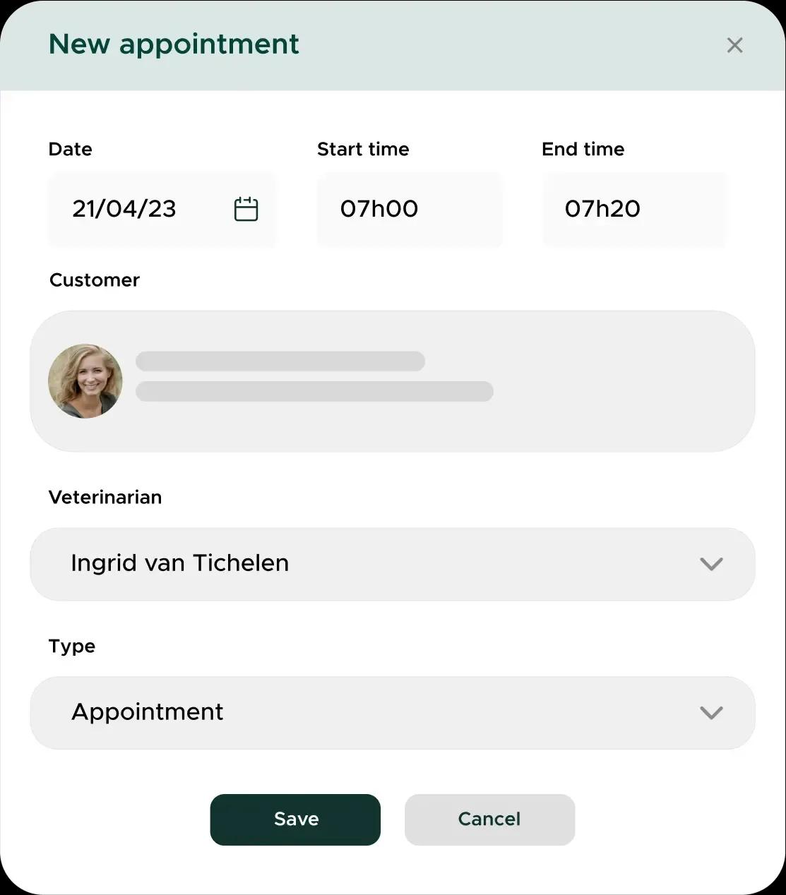 When making an appointment, you can directly select the customer and patient from your database, so that their information is transferred.